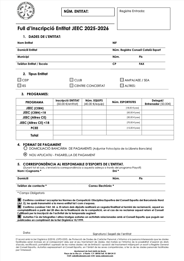Pots descarregar ell formulari d’inscripció d’equips fent click a aquest enllaç